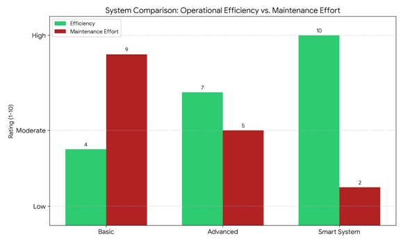 - As we enhance the technology of a system from basic to smart, the efficiency of the system goes up but the maintenance time and costs come down substantially.